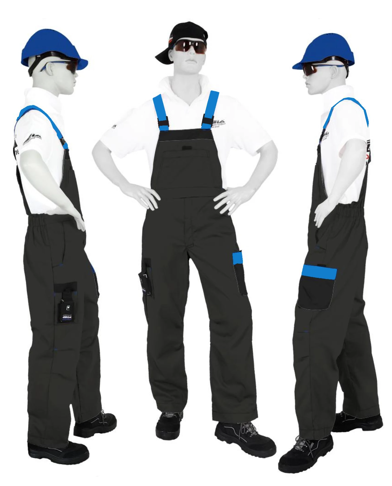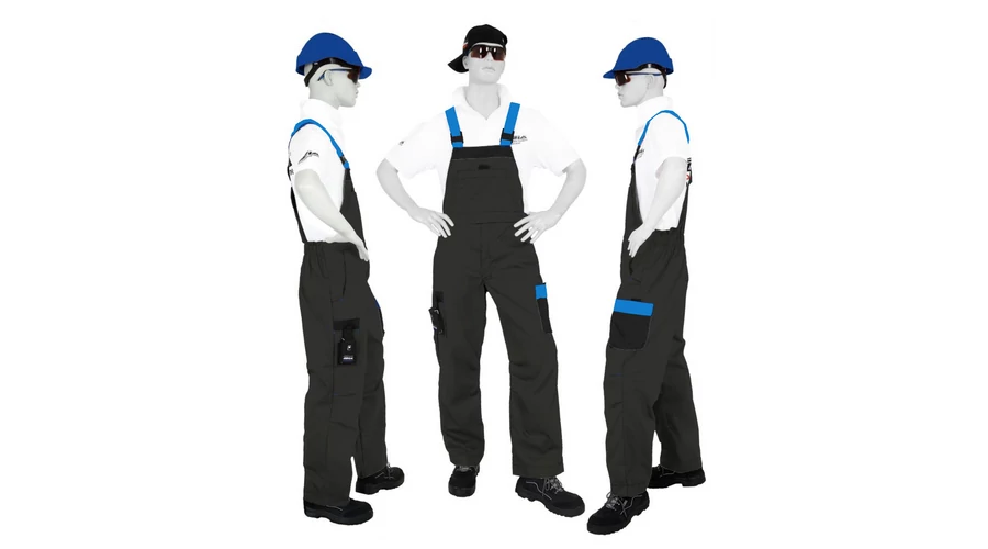 Strapabíró, kényelmes kantáros nadrág mindennapi munkavégzéshez, állítható vállpántokkal és praktikus zsebkialakítással.